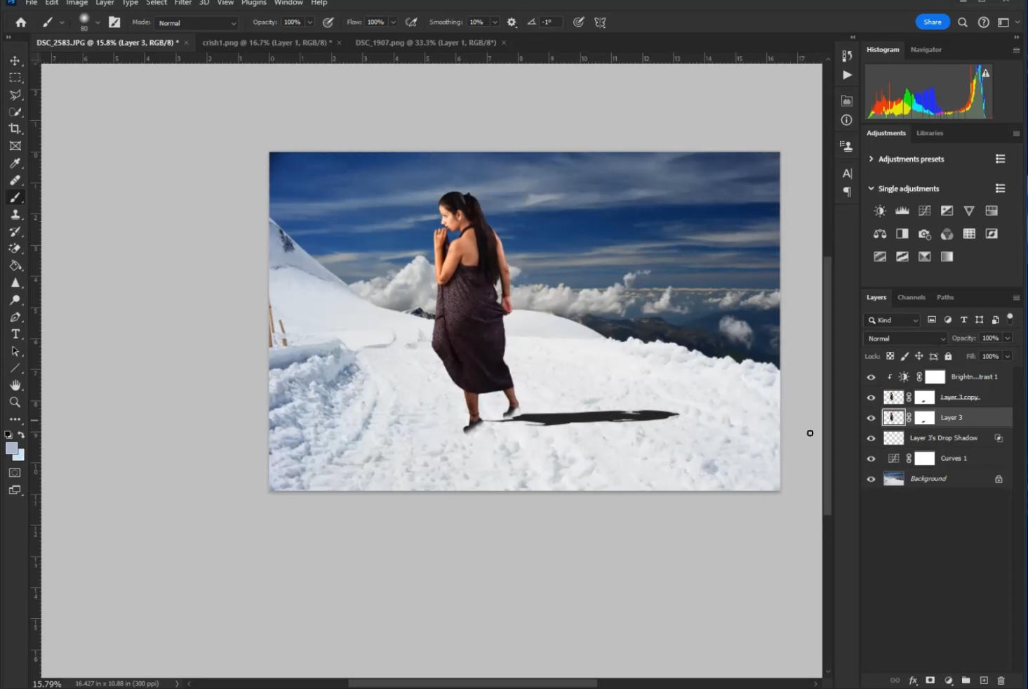 Master the technique of adding a figure to a snowy mountain scene. Unleash your creativity as you learn to craft realistic shadows, bringing your compositions to life in this captivating course.