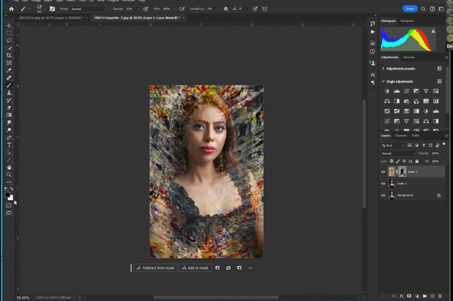 Unleash the power of masking in your creative process! Discover the art of blending a portrait seamlessly with a painterly pattern, elevating your compositions to a unique and artistic level.