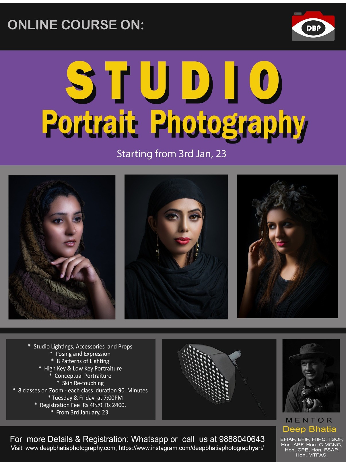 Being a part of the recently concluded online Indoor Portrait Photography course conducted by our beloved and extremely knowledgeable Sir, Mr. Deep Bhatia has been one of the most beneficial things in my life. His deep knowledge about various genres of photography and art (both theoritical as well as practical) and immense editing skills which he does with absolute ease very aptly syncs with his name. Sir's meticulous and proactive ways of teaching make the entire session very lively and engrossing. With due respect to all my teachers, mentors, guides that I have come across in various phases of my life, I must admit that teachers like Deep Sir are hard to find. I am also overwhelmed by the huge collection of awards he has in his baggage which itself speaks volumes about his great artisitic and aesthetic skills. Indeed what a talent !! Really feels proud to be associated with such a personality. I have done multiple online courses under him and am currently doing another course in Still Life Photography which is also being quite brilliantly conducted as always. Will certainly recommend others to join his courses as the great advantage of his curriculum is the fact that one is able to even watch the recorded version of the entire class for future references or in case one is unable to attend some sessions. Morever, in my opinion the fees for his courses seem to be quite reasonable considering the time period of the courses and the amount of information that is shared by him. I for sure will definitely be a part of his other photography courses in the future. I will always be praying for a very healthy and prolonged life of Sir for many more years to come to keep on being the active guiding light for many aspirant students like me. With best regards.